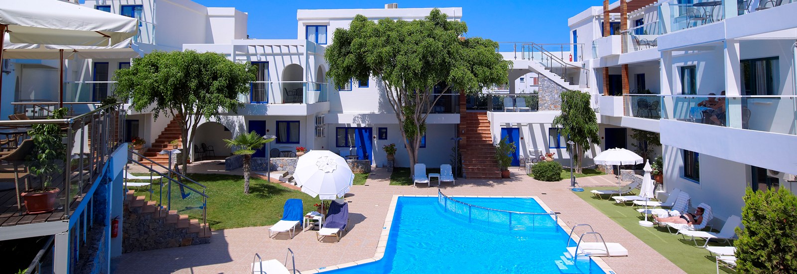 Minos Village hotel is located 350 meters from the cosmopolitan beach resort of Agia Marina in Chania with the endless sandy beach, the numerous restaurants and the intense night life. It is also about 9 kilometers from the town of Chania.