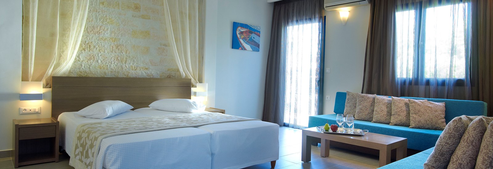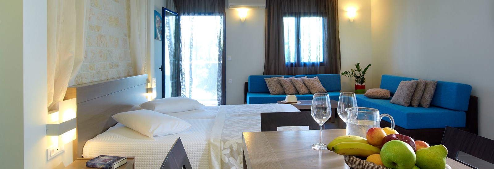 Τα 36 μονόχωρα και δίχωρα διαμερίσματά του ξενοδοχείου μας είναι ευρύχωρα, καλόγουστα, διακοσμημένα με υψηλής αισθητικής επίπλωση, με ανάλαφρες χρωματικές πινελιές και σχεδιασμένα με υψηλών προδιαγραφών ανέσεις και αισθητική. Εξοπλισμένα και επιπλωμένα με υψηλά στάνταρ, τα άνετα αυτά δωμάτια, ποικίλουν σε μέγεθος και μπορούν να φιλοξενήσουν ζευγάρια, μεγάλες οικογένειες και παρέες φίλων.
